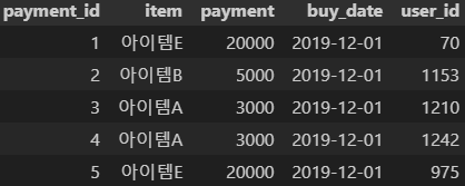 fig 9을 보면 어떤 유저가 어떤 품목을 언제 결제했는지 알 수 있습니다.